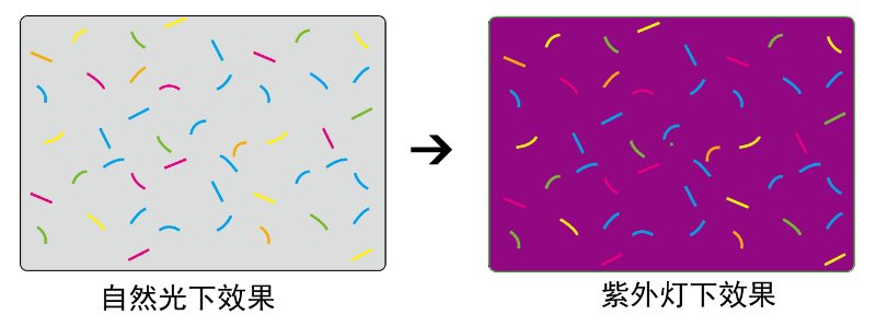 ★常态為(wèi)蓝色,在荧光灯下,无变化